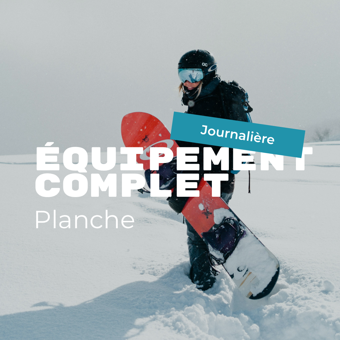 Location d'équipement complet comprenant la planche, les bottes et le casque.